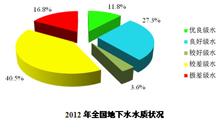 依據(jù)中華人民共和環(huán)境保護(hù)部《2012年中環(huán)境狀況公報》,2012年中地下水環(huán)境質(zhì)量為: